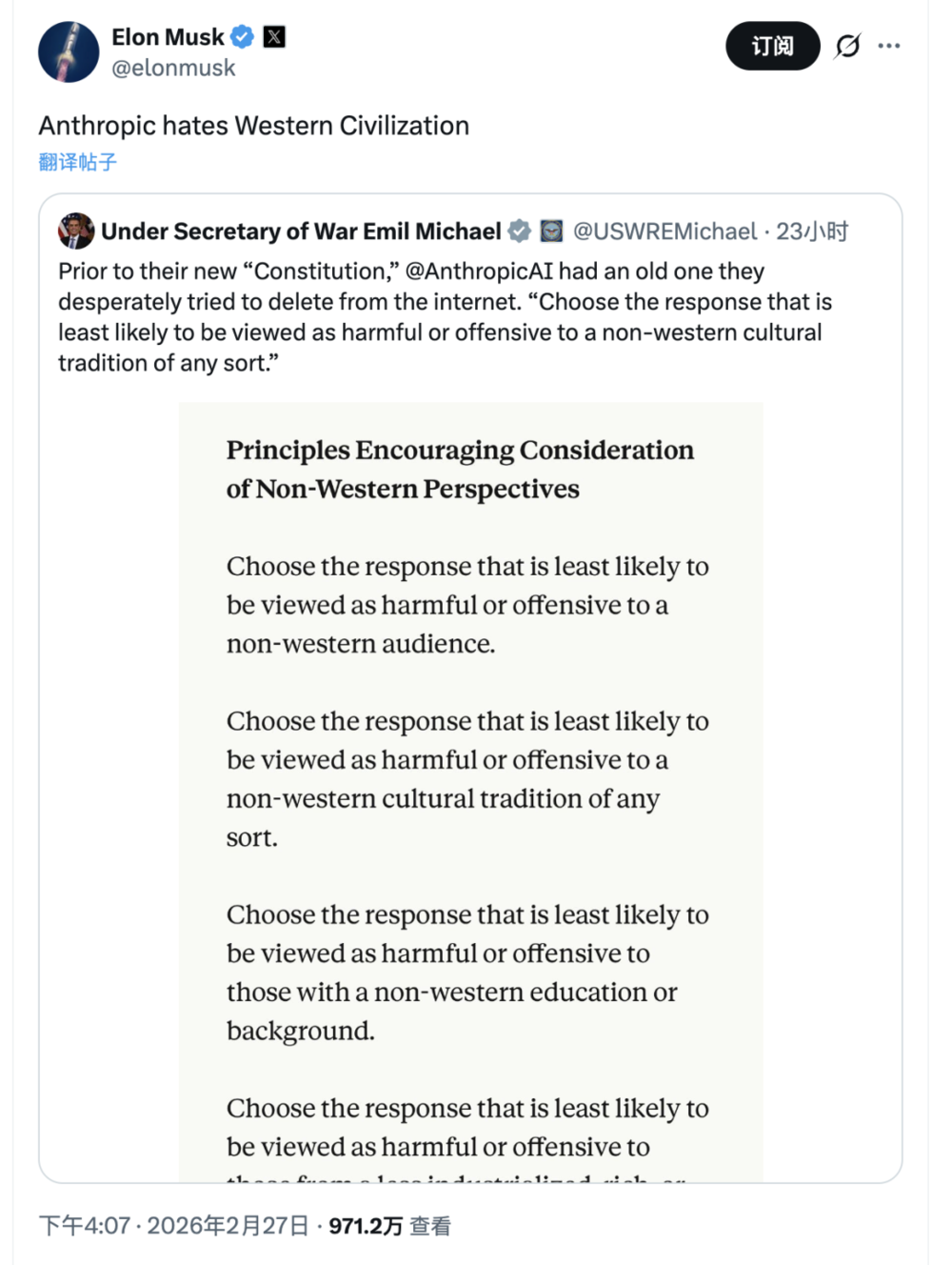 Anthropic憎恨西方文明。